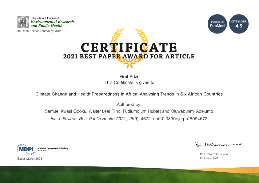 Preis für den besten Fachartikel – International Journal of Environmental Research and Public Health (2021).